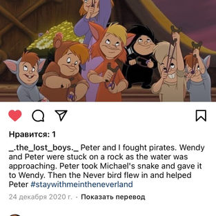 В рамках данной учебной программы учащимся была предложена к прочтению адаптированная версия книги Д.М. Барри "Питер Пен" и, основанная на ней, проектная деятельность с использованием социальной сети "Instagram". (#staywithmeintheneverland)